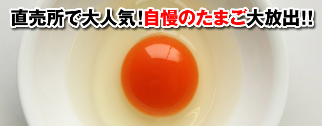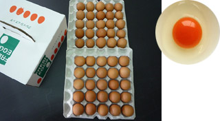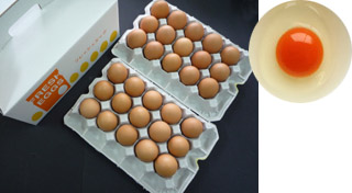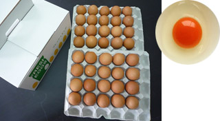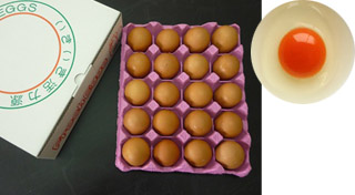 美味しく、安全なたまごを産んでもらうために、鶏の健康を第一に考え、飲水には“カルシウムイオン水”を 与え、抗生物質は一切使用せず、自家配合した栄養たっぷりの飼料で育てた鶏たまごです。濃厚な味と鮮やかな黄身の色が自慢です。 |